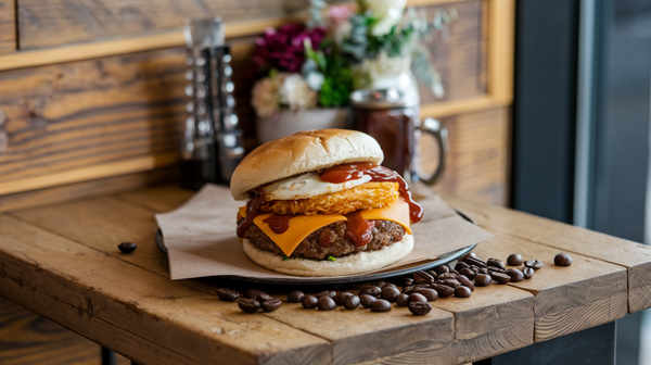 Sweet & garlicky patty with old english cheese, Hashy, Fried egg & Special Sauce