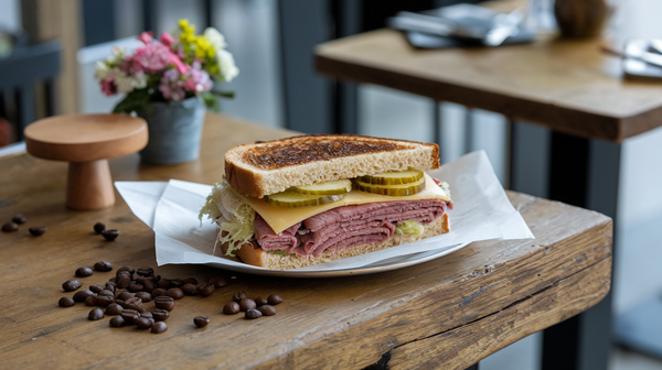 Beef pastrami, old english cheese, pickles, sauerkraut & dijon mustard on toasted sourdough