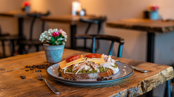 Shredded chicken, pesto & pecorino, old english cheese, sundried tomato on toasted sourdough